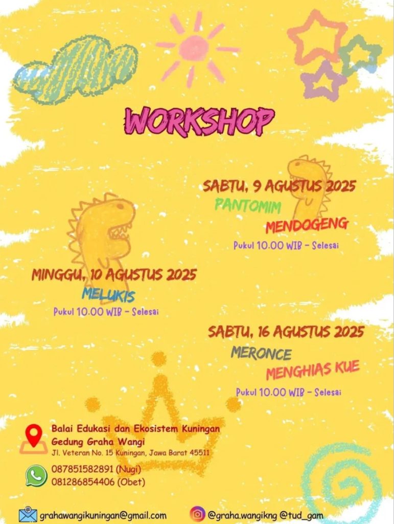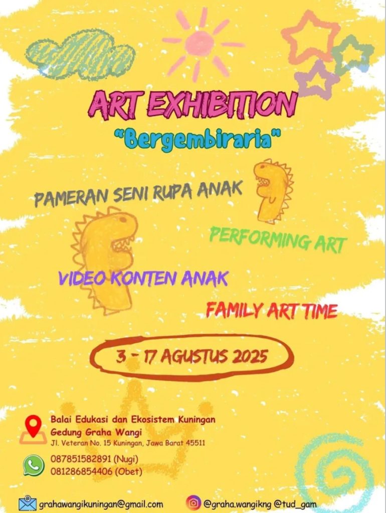 Komunitas seni dan edukasi Tudgam bekerja sama dengan Balai Edukasi dan Ekosistem Kuningan (Graha Wangi) membuka ajakan terbuka (open call) untuk anak-anak di Kabupaten Kuningan dalam program khusus bertajuk Tudgam Kids “Bergembiraria”. Pendaftaran dibuka mulai tanggal 20 hingga 31 Juli 2025.