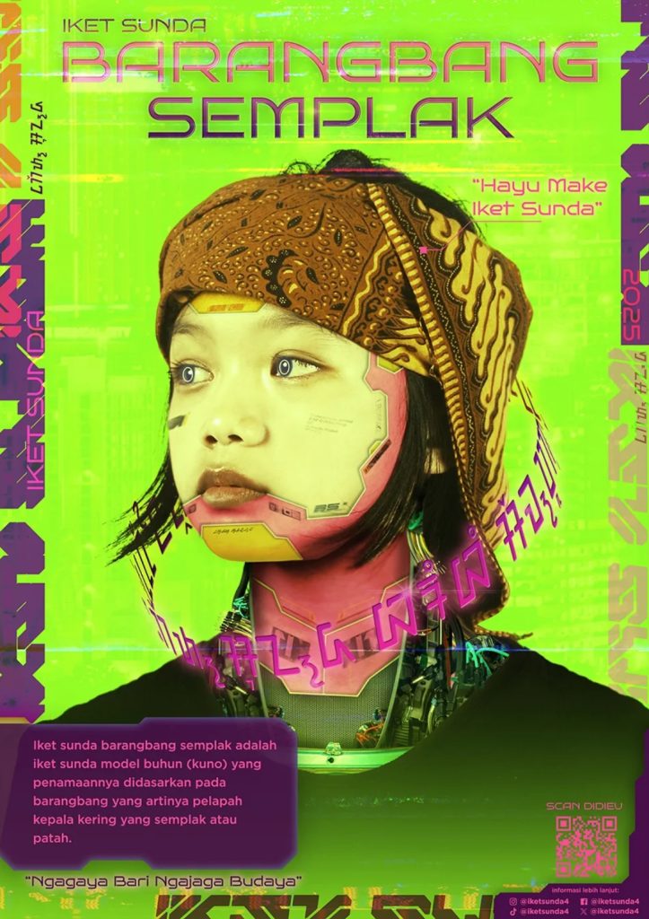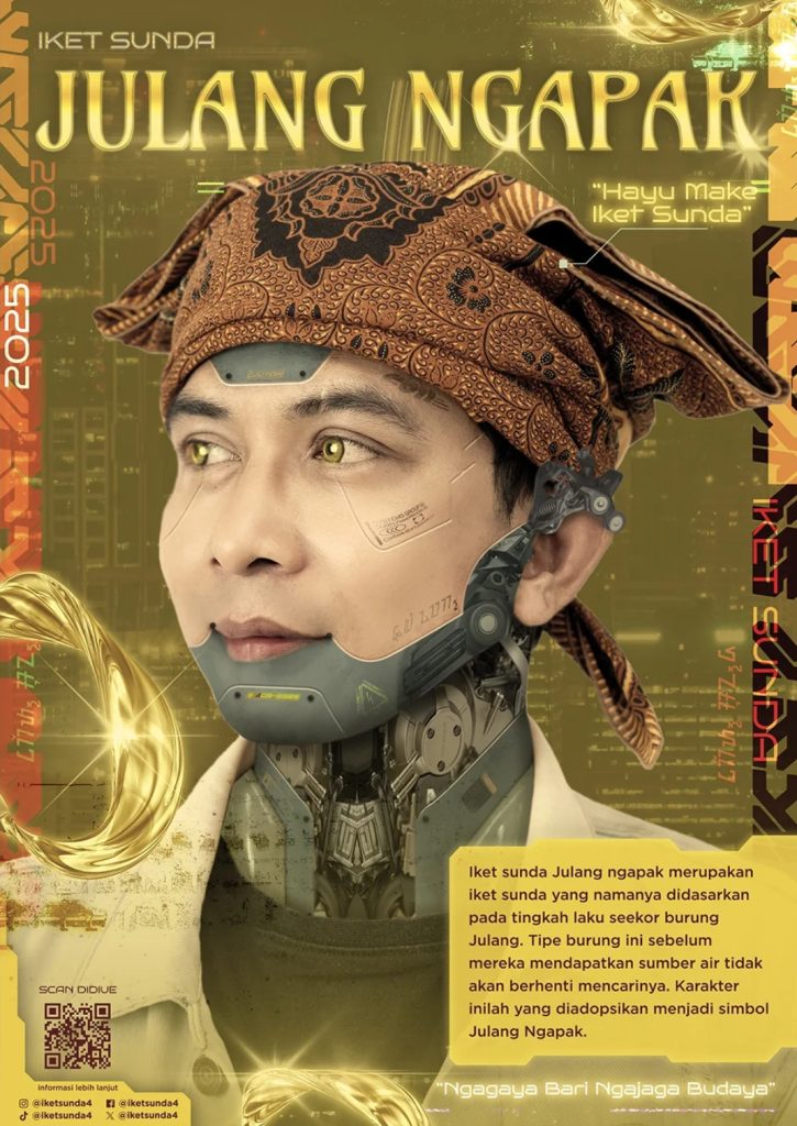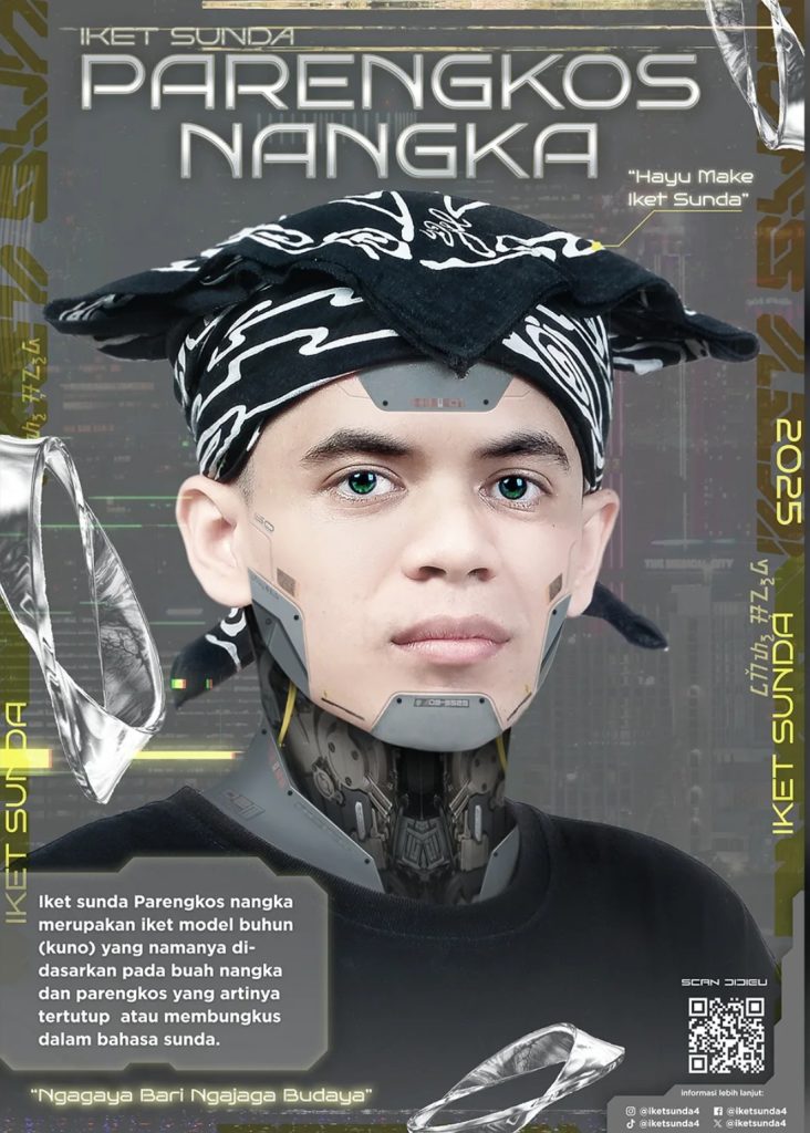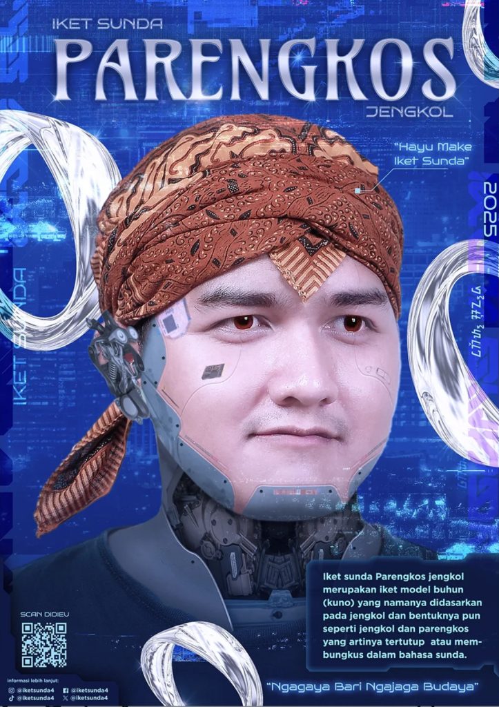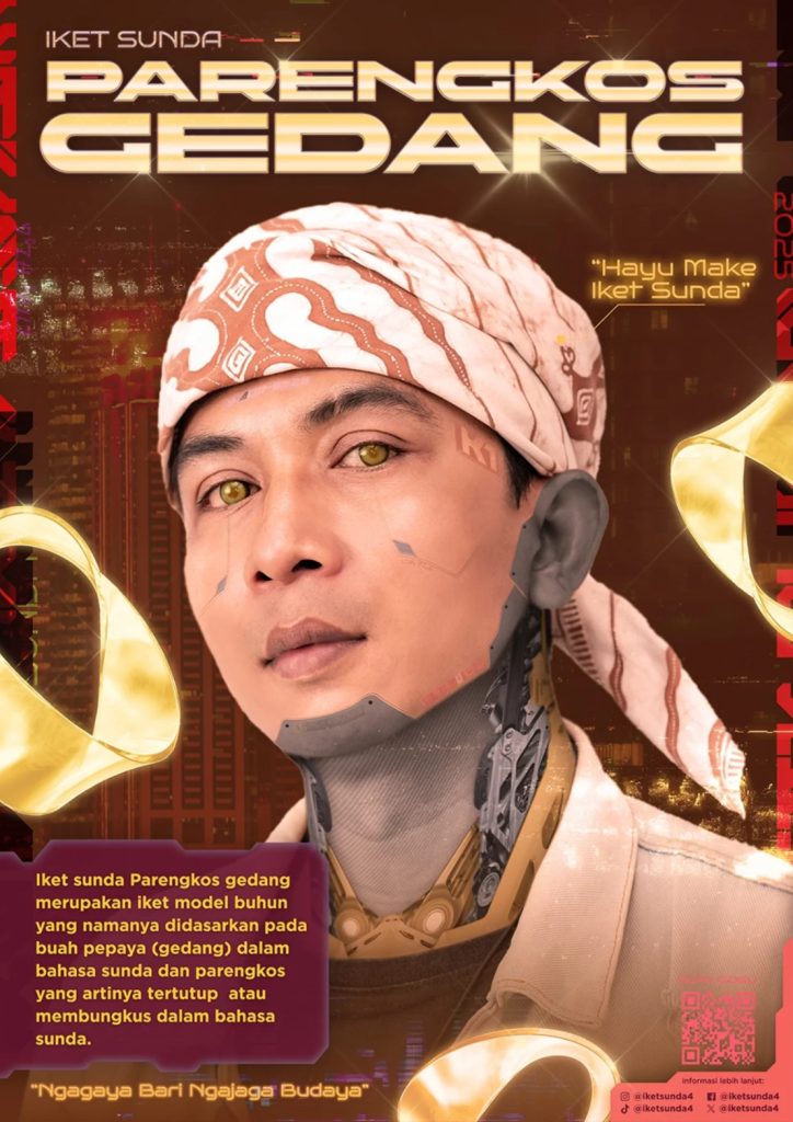 Zidan Al-Khaidar, seorang mahasiswa dari DKV Uniku yang tengah mengerjakan proyek perancangan visual bertema futuristik, merilis karya poster yang bertujuan untuk memperkenalkan kembali iket Sunda kepada generasi muda melalui slogan “Ngagaya bari Ngajaga Budaya”. Karya ini hadir sebagai respons terhadap semakin menurunnya penggunaan iket Sunda di masyarakat akibat modernisasi, perubahan gaya hidup, serta pergeseran cara pandang generasi muda terhadap identitas budaya.